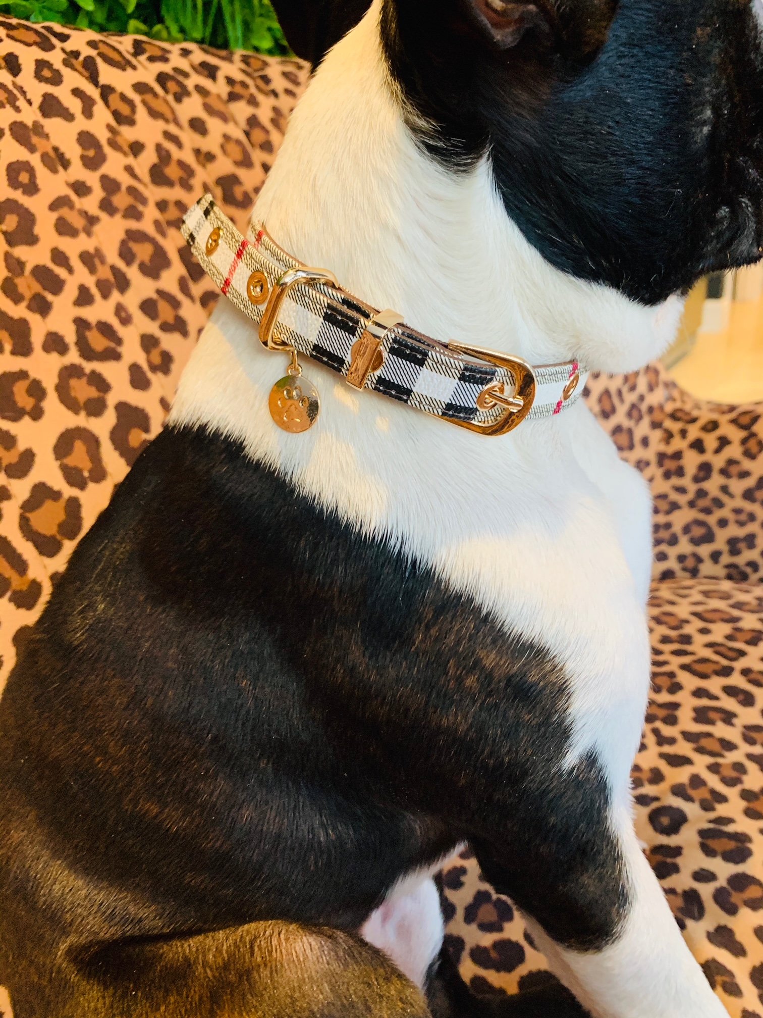 Inspired by Classic British design this collar and leash set is perfect for those long country walks. It comes with gold colour metal accents and buckles.