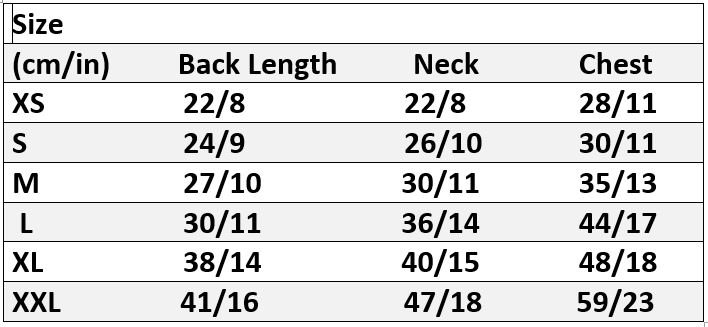 Please check our sizing chart in the image gallery against your dog’s measurements – if you’re in between sizing we’d suggest going for the larger size.